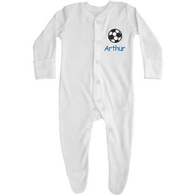 Personalised Name & Football Embroidered Baby All in One Sleepsuit (6 9 Months, Royal Embroidery)