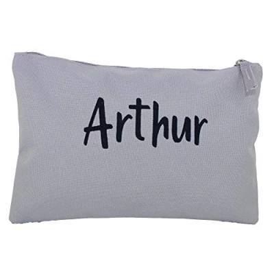 Personalised Name Silver Grey Travel Wash Bag (Black Embroidery)