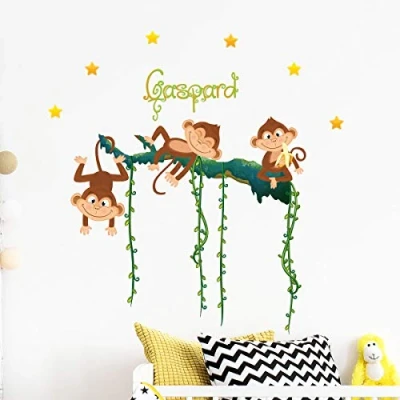 This sticker is composed of separate elements on two boards. The alphabet board measures 45 x 30 cm. The monkeys on the branch measure 20cm x 40cm. The uppercase letters are between 5cm and 7cm tall and the lowercase letters are between 2cm and 9cm tall. Customisable first name: thanks to the alphabet board, you can select the letters you need to form the first name of your choice. You can create multiple names with the same alphabet board. Easy to apply: simply peel the adhesive from the backing paper and place it on a dry, clean, smooth and non-porous surface. The personalised name sticker is a very thin vinyl, printed on top and of superior quality. Allows precise installation of your sticker without the formation of air bubbles. Durable and durable: 5-year lifespan. High definition digital printing. Non-flammable, non-toxic, no smell, resistant to high temperatures, scratches and water, no use of aggressive or abrasive products. Clean with fresh water.