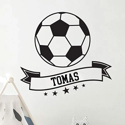 Personalised Name Stickers Football Wall Sticker Children's Room Decoration 2 Sheets of 50 x 55 cm and 60 25 Black