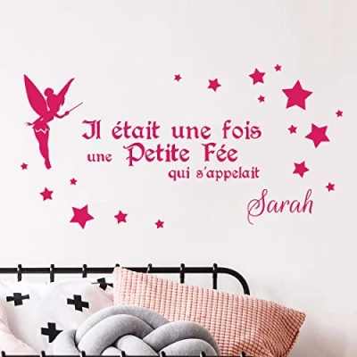 This sticker is composed of separate elements on two boards. The alphabet board measures 40 x 25 cm. Fairy measures 20cm x 10cm The uppercase letters measure approximately 5cm tall and the lowercase letters measure between 2cm and 4cm tall. Customisable first name: thanks to the alphabet board, you can select the letters you need to form the first name of your choice. You can create multiple names with the same alphabet board. Easy to apply: simply peel the adhesive from the backing paper and place it on a dry, clean, smooth and non-porous surface. The personalised name sticker is a very thin vinyl, printed on top and of superior quality. Allows precise installation of your sticker without the formation of air bubbles. Durable and durable: 5-year lifespan. High definition digital printing. Non-flammable, non-toxic, no smell, resistant to high temperatures, scratches and water, no use of aggressive or abrasive products. Clean with fresh water.