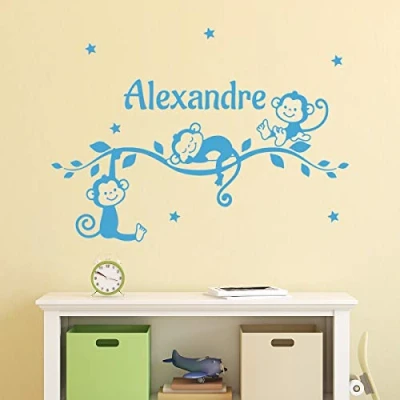 This sticker is composed of separate elements on two boards. The alphabet board measures 40 x 30 cm. The 3 monkeys on the branch measure 25cm x 50cm. The uppercase letters measure approximately 5cm tall and the lowercase letters measure between 3cm and 5cm tall. Customisable first name: thanks to the alphabet board, you can select the letters you need to form the first name of your choice. You can create multiple names with the same alphabet board. Easy to apply: simply peel the adhesive from the backing paper and place it on a dry, clean, smooth and non-porous surface. The personalised name sticker is a very thin vinyl, printed on top and of superior quality. Allows precise installation of your sticker without the formation of air bubbles. Durable and durable: 5-year lifespan. High definition digital printing. Non-flammable, non-toxic, no smell, resistant to high temperatures, scratches and water, no use of aggressive or abrasive products. Clean with fresh water.