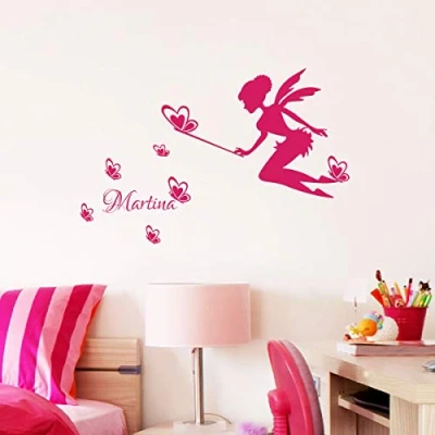 This sticker is composed of separate elements on two boards. The alphabet board measures 40 x 30 cm. Fairy measures 30cm x 20cm The uppercase letters are between 5cm and 7cm high and the lowercase letters are between 2cm and 6cm high. PERSONALISED NAME: Thanks to the alphabet board, you can select the letters you need to form the name of your choice. You can create multiple names with the same alphabet board. Easy to apply: simply peel the adhesive from the backing paper and place it on a dry, clean, smooth and non-porous surface. The personalised First Name sticker is a very thin vinyl, printed on top and of superior quality. Allows precise installation of your sticker without the formation of air bubbles. DURABLE AND RESISTANT: 5-year lifespan. High definition digital printing. Non-flammable, non-toxic, no smell, resistant to high temperatures, scratches and water, no use of aggressive or abrasive products. Clean with fresh water.