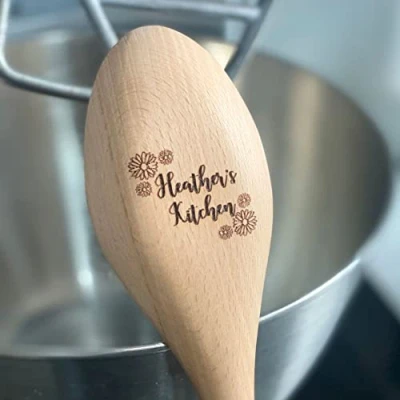 This personalised Kitchen wooden spoon is a perfect gift for someone who loves baking! It can be personalised with any name/message or logo to make it completely unique. The writing will be on the back of the spoon and on the handle. You can either have the same message on the spoon and the handle or they can have a different message e.g Heather's Kitchen on the spoon and on the handle Lots of Love Gracie xx