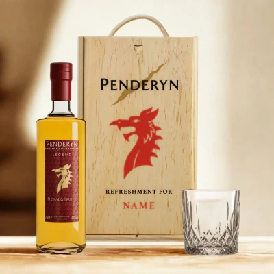 🥃 Make your next gift unforgettable with this luxurious Personalised Penderyn Welsh Whisky Set. Showcasing Penderyn’s award-winning single malt whisky. A true Welsh whisky beauty! 🥃 Proudly distilled in the heart of Wales – this stunning whisky gift set is perfect for birthdays, retirements, anniversaries, or simply celebrating in style. 🥃 Housed in a crafted wooden gift box, the set includes a full-size bottle of Penderyn Whisky (46% ABV), known for its smooth, rich character and hints of tropical fruit, vanilla, and oak. 🥃 Alongside it, a high-quality whisky glass adds a touch of elegance – ideal for savouring every dram. To enjoy Penderyn is Wales’s most celebrated whisky distillery. 🥃 This product will be packed in a sturdy and safe branded box ready for delivery. This is the perfect Welsh whisky gift for any occasion. Pairs exceptional craftsmanship with a unique touch.