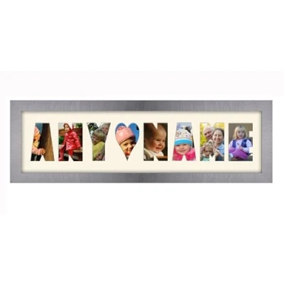 Personalised Photo Frame any Name Word 3 to 9 letters Single Mounted Unique Birthday Picture Gift Present (Brushed silver Cream Mount, 8 Letter)