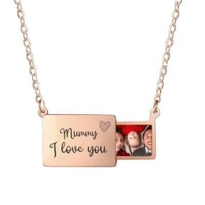 Personalised Photo Necklace Rose Gold Locket with I Lobe You Mum, Birthday Gift Message Necklace, Letter, Engraved Love Mother Secret Note, Letterbox, for Her