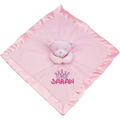 Personalised Pink Baby Teddy Bear Comforter Blanket (Pink)