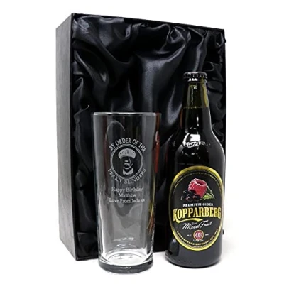 Personalised Pint Glass & Cider Peaky Blinders Design (Kopparberg Mixed Fruit Cider, Silk Lined Gift Box)