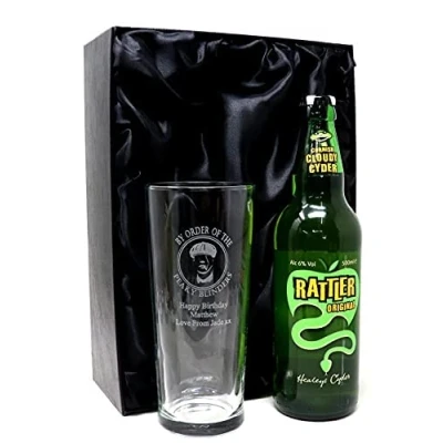 Personalised Pint Glass & Cider Peaky Blinders Design (Rattler Original Cornish Cider, Silk Lined Gift Box)