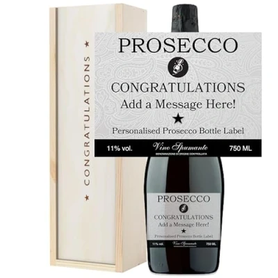 Personalised Prosecco Congratulations Gift Set Wooden Box with Custom Bottle Label 75cl Vino Spumante (Congratulations Box)