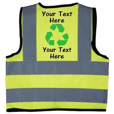 Personalised Recycling Baby Toddler Children's Kids Hi Vis Safety Jacket Vest Sizes 2 3 Years Yellow Optional Text On Front