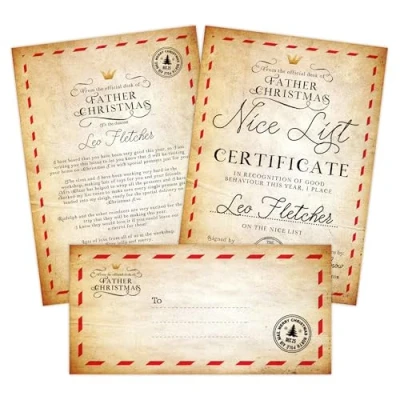 ersonalised Certificate: Customise this A4 letter with the child's name to recognise their good behaviour and kindness throughout the year. High-Quality Material: Printed on high quality textured paper for a premium look and feel. FestiveChristmas Santa Design: Features a jolly Santa Claus illustration along with an official 'Santa Approved' seal. Thoughtful Gift: A delightful present to motivate children and celebrate their accomplishments during the Christmas season. Dimensions: Measures 21 cm x 29 cm (AA size) for a convenient display or framing option. Letter is A4 size printed on high quality textured paper Includes Envelope