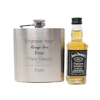 Personalised Silver Hip Flask & Miniature Alcohol (Tennessee Whiskey/No Gift Box)
