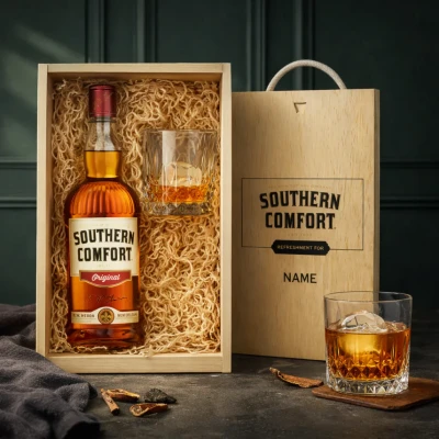 Personalised Southern Comfort Whiskey 70cl in Wooden Box with Glass (35% ABV)