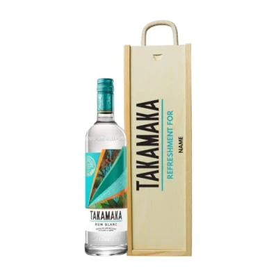 Personalised Takamaka Blanc White Rum Gift Set with Wooden Box 70cl