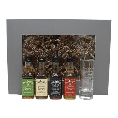 Personalised Tall Shot Glass & 4 Miniature Bottles in Presentation Gift Box (Tennessee Whiskey Flavours)