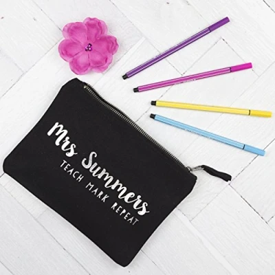 Personalised pencil case - a perfect teacher gift Personalisable with a name of your choice. Simply click customise now and enter the name required. Available in 4 different colour options - Black, Grey, Pink and Navy Pencil case made from a heavyweight 100% brushed cotton canvas Produced and dispatched in the UK