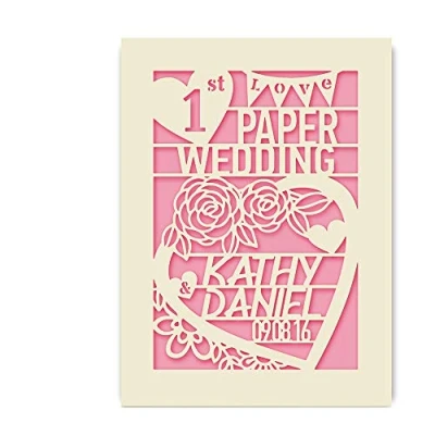 Elite design personalised papercut anniversary card, adorable for any date and name personalised anniversary gift. Personalised Papercut Anniversary Card Paper Cut, in house technology. Size: A5 (21 * 15 cm),Personalised with names and date. Laser-cut from a beautiful, excellent quality ivory card, comes with a white envelope. Hand-finished with high quality coloured paper inlay for anniversary blessing handwriting.