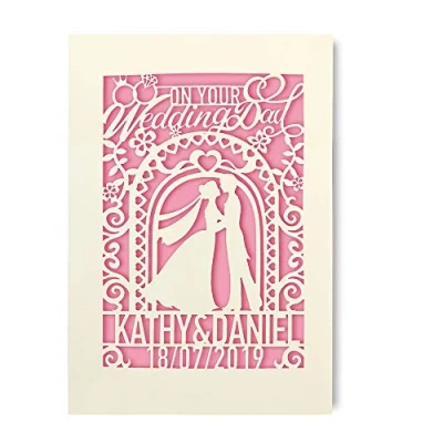 Personalised Wedding Card Laser Cut Greeting Custom Gift for Bride Groom with Envelope Hand Finished in UK(Pink)