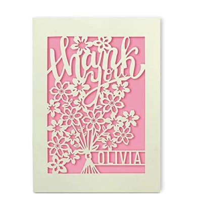 Personalised Wedding Thank You Card Custom Gift Hand Finished in UK Laser Cut Flower Design Cards with Envelopes Blank Notes for Wedding, Baby Shower, Anniversary(Pink)