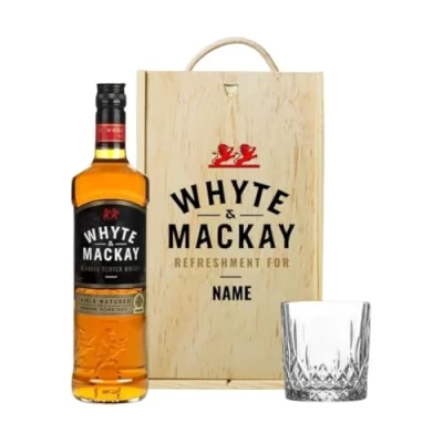 Personalised Whyte and Mackay Blended Scotch Whiskey 70cl in Wooden box with glass (40% ABV)
