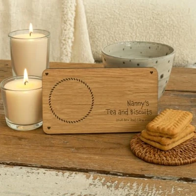 Personalised Wooden Tea and Biscuit Coaster Gift, Coffee Cake Board, Gift For Grandparents, Parents, Wood Coaster, Laser Engraved
