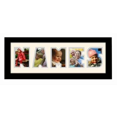Personalised Word Photo Frame Name Birthday Picture Gift Present (Black Finish Cream Mount Grey Inside, 5 Letters (Letters only no spaces))