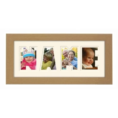 Personalised Word Photo Frame Name Birthday Picture Gift Present (Oak Finish Cream Mount Inside, 4 Letters (Letters only no spaces))