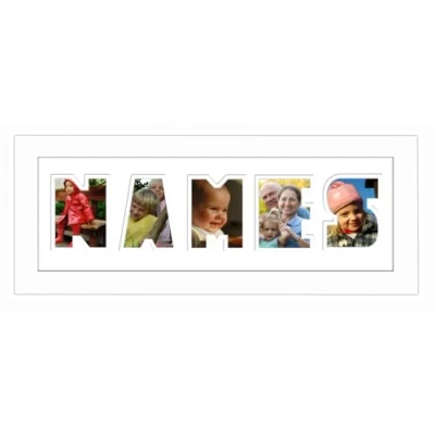 Personalised Word Photo Frame Name Birthday Picture Gift Present (White Finish White Mount Inside, 5 Letters (Letters only no spaces))