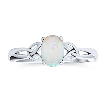 Personalize Dainty BFF Triquetra Celtic Love Knot Oval White Created Opal Ring Promise For Teen Women .925 Sterling Silver Customizable