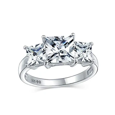 Celebrate your love for your sweetheart with this divinely classic engagement ring. Accented by colorless 3 radiant princess cut Cz stones including a 2cz carat at center with size on either side. Symbolize endless love, it will make a wonderful promise ring as well. Size 5 ring Measure: 3mm Bottom Band Width Weight: 6 grams Stone: 7 mm W Material: .925 Sterling Silver, Rhodium Plated, CZ Anti-tarnish finish Rhodium plating enhance shine and durability. Each piece is stamped .925 guarantees the quality and craftmanship. HYPOALLERGENIC - Lead-Free Nickle-free. Buy Cubic Zirconia: Show your love for the Earth and your sweetheart by choosing cubic zirconia jewelry gifts. Lab created CZ reduces social and destructive environmental impact caused by the mining of diamonds. CZ Jewelry is virtually flawless and only a jeweler can tell the difference. Thoughtful Gifts for Every Occasion: Whether it's Mother's Day, an Anniversary, Wedding, Birthday, Holiday, Stocking Stuffer, Christmas, Valentine’s Day, or Graduation, our exquisite jewelry is the perfect present. Ideal for expressing your love to your Sister, Mother, Grandmother, Daughter, Wife, Girlfriend, Aunt, Mum, Mommy, Grandma, or even for yourself. It's the ultimate gift for anyone special in your life. USA-Based Company with 30-Day After-Sale Service: We take pride in our craftsmanship and product quality. Rest assured, if you receive an item with manufacturing defects, we've got you covered. Click on the link to contact our friendly customer service.
