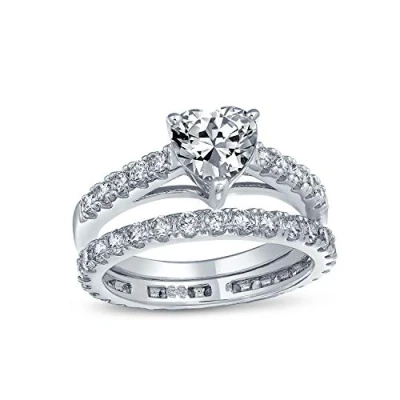 Personalized 1CT Cubic Zirconia AAA CZ Romantic Heart Shaped Anniversary Wedding Engagement Ring Pave Band Set For Women .925 Sterling Silver Customizable