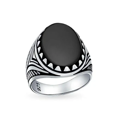 ROBUST MASCULINE DESIGN - A unique animal claw teeth men's fashion ring with a statement black onyx gemstone. when you wear it, it promotes health, good luck and healing makes a great gift. Measure: Ring Face 21.4MM Bottom Band Width 5MM Weight: Approx. 8-9 Grams Material: Oxidized .925 Sterling Silver, Onyx Due to the naturally occurring characteristics of gemstones, each is unique and may exhibit imperfections such as inclusions, blemishes, and cloudiness, as well as color variations. Each piece is stamped .925 guarantees the quality and craftmanship HYPOALLERGENIC - Lead-Free Nickle-free Thoughtful Gifts for Him: Our jewelry is the perfect choice for special occasions such as Father's Day, birthdays, Christmas, holidays, graduations, groomsmen gifts, anniversaries, and Valentine’s Day. Whether it's for your best friend, boyfriend, brother, dad, grandfather, son, husband, uncle, nephew, a teenage guy, or even to treat yourself, our unique pieces make for meaningful and stylish gifts for men. USA-Based Company with 30-Day After-Sale Service: We take pride in our craftsmanship and product quality. Rest assured, if you receive an item with manufacturing defects, we've got you covered. Click on the link to contact our friendly customer service.