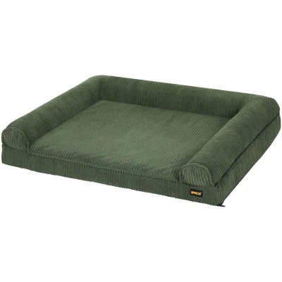 【Cozy Corduroy Comfort】Made with soft corduroy fabric, this dog sofa bed provides a warm and cozy spot for your pet to relax. Perfect for indoor use, it creates a comfortable retreat your dog will love throughout the day. Ideal as a pet couch or indoor dog bed. 【Supportive Raised Armrests】Padded PP cotton armrests support your dog’s head and back, providing comfort and a sense of security while resting. Perfect for pets who like to curl up or lean on the sides. Also works as a dog bed with bolsters for added support. 【Egg Crate Foam Base】The egg crate foam base offers even cushioning and support, helping your dog rest comfortably for long periods. Maintains its shape over time and delivers a supportive dog bed experience. 【Removable and Machine-Washable】The dog sofa features a detachable cover with dual zipper design for easy removal and machine-washing, making cleaning hassle-free and keeping your pet’s space fresh and hygienic. A convenient washable dog sofa for everyday use. 【Non-Slip Base for Safety】Equipped with a non-slip, anti-slip bottom, this pet couch stays securely in place on hard floors. Prevents slipping and provides a stable resting surface, keeping your dog safe during play or relaxation. 【Stylish and Home-Friendly Design】The fresh green corduroy fabric blends seamlessly with any home décor, making it a stylish and practical addition to your living room, bedroom, or any indoor space. Perfect as a living room dog bed or indoor pet sofa.