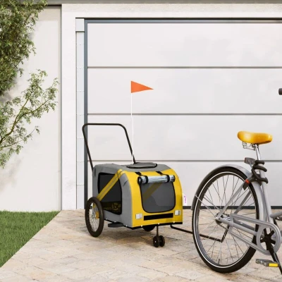 Pet Bike Trailer Yellow and Grey Oxford Fabric Iron Vidaxl