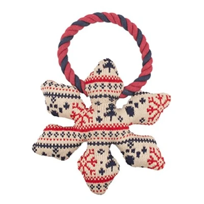 Complete with Squeaker Plush Chew Toy Great Gift for Your Pet this Christmas Also includes rope to interact and play tug-of-war with your dog at Christmas time Get your dog involved in this Christmas spirit this year with this festive designed dog toy Festive design snowflake shape with festive colours Rope handle for tug and play