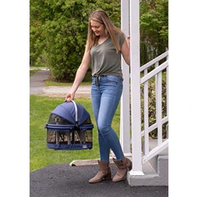 Pet Gear No Zip View 360 Safety Carrier & Car Seat for Small Dogs Cats Push Button Entry, 20 inch, Navy