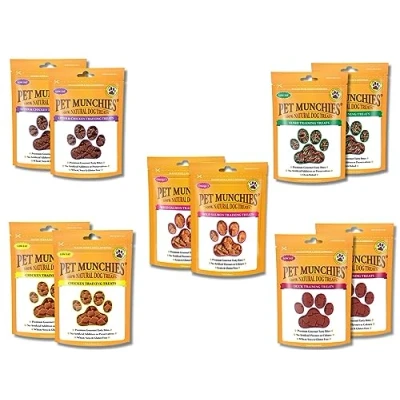 Pet Munchies Training Treats Mixed pack of 10 2x Wild Salmon Chicken & Liver Duck Sushi All 5 Varieties BQS UK Trademark