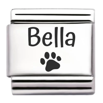 Pet Paw Name Personalised Custom Engraved Italian Charm Fits All 9mm Bracelet Links. Dog or Cat (Bella)