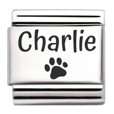Pet Paw Name Personalised Custom Engraved Italian Charm Fits All 9mm Bracelet Links. Dog or Cat (Charlie)
