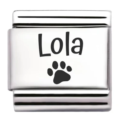 Pet Paw Name Personalised Custom Engraved Italian Charm Fits All 9mm Bracelet Links. Dog or Cat (Lola)