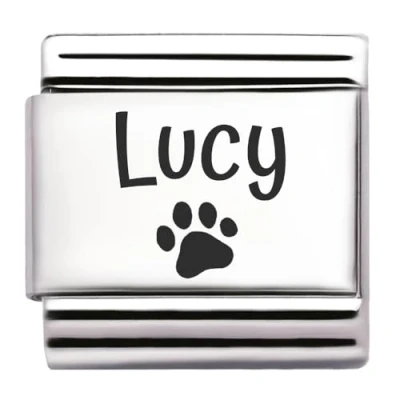 Pet Paw Name Personalised Custom Engraved Italian Charm Fits All 9mm Bracelet Links. Dog or Cat (Lucy)