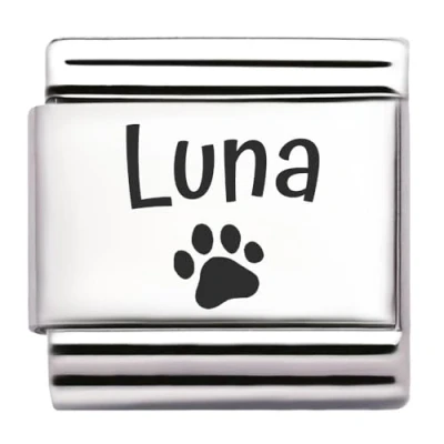 Pet Paw Name Personalised Custom Engraved Italian Charm Fits All 9mm Bracelet Links. Dog or Cat (Luna)