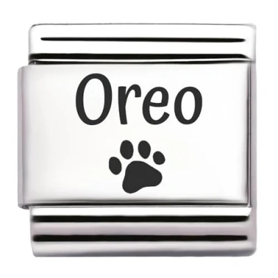 Pet Paw Name Personalised Custom Engraved Italian Charm Fits All 9mm Bracelet Links. Dog or Cat (Oreo)