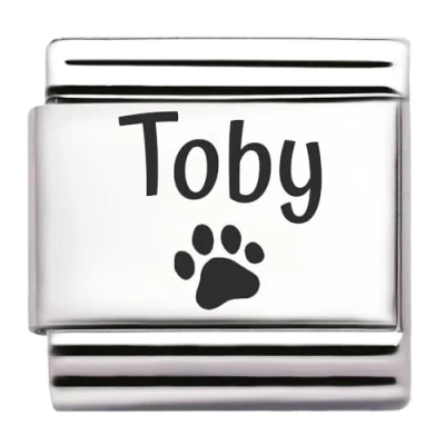 Pet Paw Name Personalised Custom Engraved Italian Charm Fits All 9mm Bracelet Links. Dog or Cat (Toby)