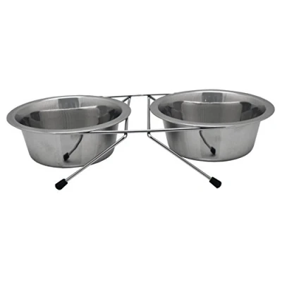 Stainless steel Dishwasher safe Rust proof Keeps bowls together and reduces spilling contents Double diners are essential feeding stations for many pet owners due to them being able to offer food and water in one area without bowls being moved by the pets around the floor and spilling their contents everywhere