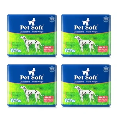 【🐶 MALE DOG NAPPIES (48pcs)】Our Pet Soft male dog nappies featured with 3 patterns, thickened and longer absorbent core. The dog nappies male Small is well fit doggy with 12”-19" (30-48 CM) waist, suitable for dogs in 6-20 pounds (2.7-9.1 KG) 【🐶 ABSORPTION & LEAK- PROOF】: Our male dog diapers are thicken than most male diapers, have super absorbent core and 360° side-leakage protection, can help you solve all of troubles such as marking prevention, urinary incontinence, dog training, travel outside, surgery recovery 【🐶 BREEZY & SOFT】: Made of pure cotton, our disposable male dog nappies are very soft, without irritation and additive, especially to carefully protect the genitals of the dog, super airy and dry, keeps your dog in a good mood. The male puppy nappies are made of premium materials and extremely easy to take on and off 【🐶 Excellent for Daily or Travel】: Our Pet Soft dog nappy is your great choice whenever daily use or travel, can be a huge help for owners to clean up messes, especially when you have excitable, untrained puppies or senior dogs with incontinence problems, make life easier for both the pet and the owner 【🐶 Pet Soft Brand After-Sales Service】: Pet Soft is a brand dedicated to improving the comfort and safety of pets. We promise to provide you with efficient and timely after-sales service. If you have any after-sales questions, please leave us a message