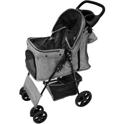 Make every walk with your pet a breeze with our Pet Stroller and Caddy Bundle, the ultimate combination of style, convenience, and comfort. Whether you're heading for a quick stroll or a longer adventure, this bundle is designed to make your outings more enjoyable for both you and your furry friend. The pet stroller is crafted with a sturdy steel frame that supports pets up to 15kg, ensuring both strength and security. Its foldable design makes storage and transport effortless, so you can take it anywhere. Designed for comfort and protection, the stroller features a fold-out canopy and rain cover, keeping your pet safe from the elements. The strategically placed ventilation windows ensure your pet stays cool while enjoying the view. Manoeuvring is a breeze with the stroller’s 2 x 8" rear wheels and 4 x 6" front swivel wheels, offering a smooth and stable ride, even on rough terrain. The foam-covered handle adds extra comfort, so you can enjoy a pleasant, controlled stroll. Plus, the