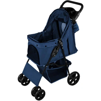 Your pet's comfort is paramount, and the stroller is equipped with a fold-out canopy and rain cover to shield them from the elements. Strategically placed ventilation windows allow for maximum airflow, keeping your pet cool while they enjoy the sights. The stroller’s design includes 2 x 8” rear wheels and 4 x 6” front swivel wheels, ensuring a smooth and stable ride, even on rough terrain. The foam-covered handle adds extra comfort for a pleasant, controlled stroll.